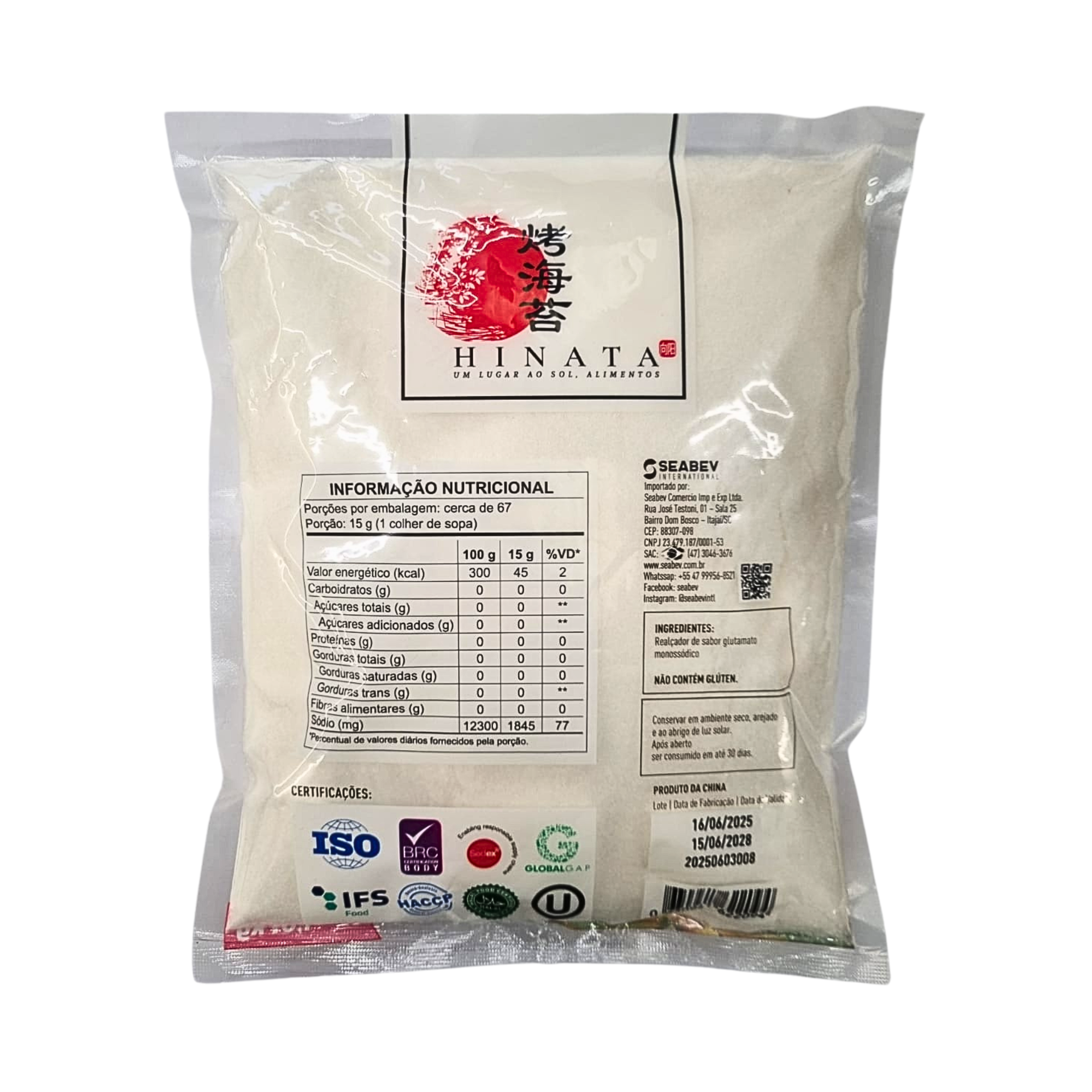 UND PCT: 1 kg UND CX MASTER: 10 und EAN13: 630941622117 DUN14: 10630941622114 COD.: 1873 LASTRO: 9 CAMADAS: 6 N° CAIXAS/PALETE: 54 PESO KG: 757,5 SHELF LIFE: 36 meses